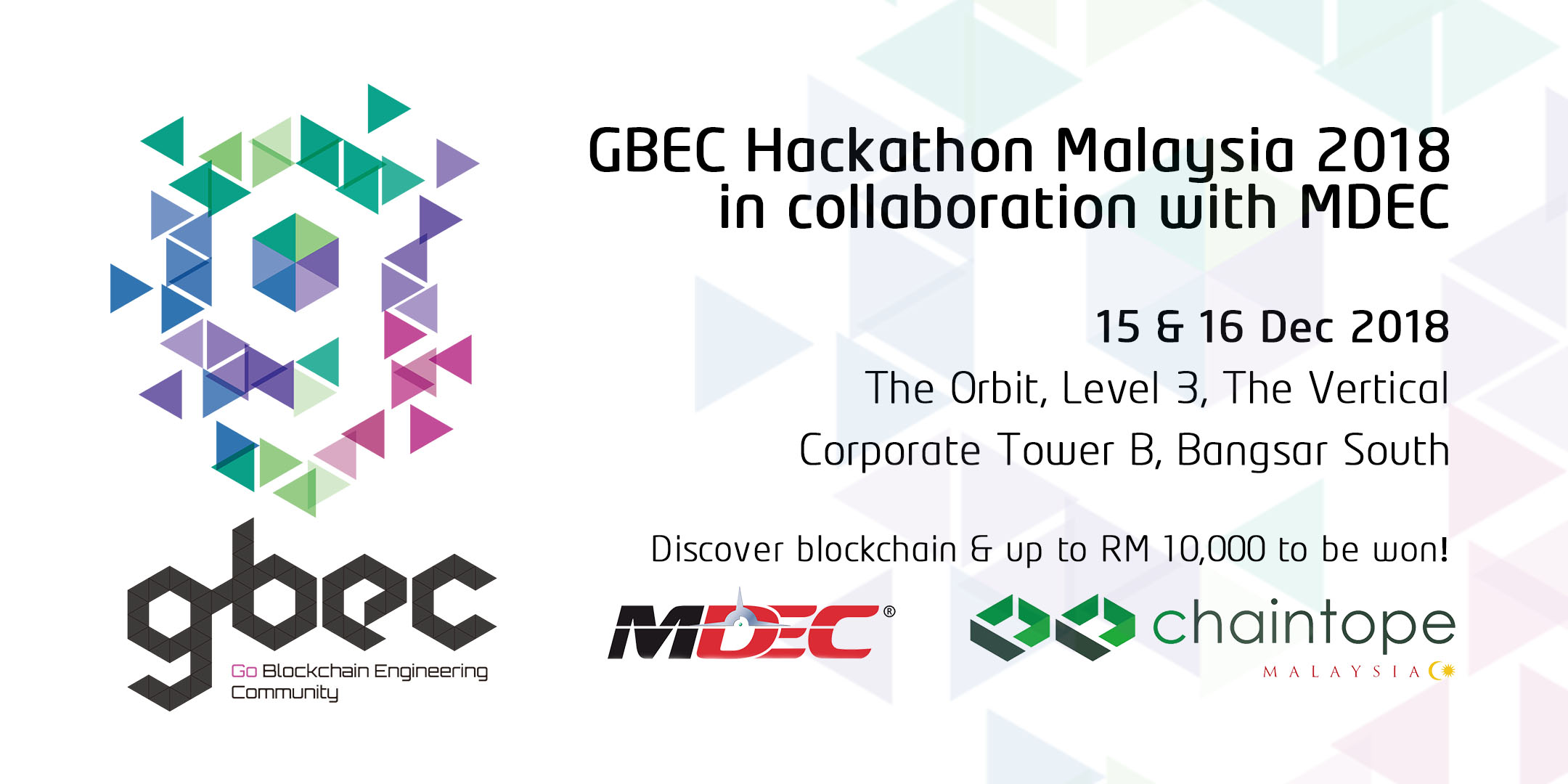 Are you interested in creating software using blockchain but not sure where to start? Come and join the GBEC hackathon over a weekend to start your blockchain journey! Learn about the programming language and tools with your friends or colleagues before embarking on a 24-hour hackathon to put your skills to the test! You may walk away with up to RM10,000 if your ideas stand out from the rest!